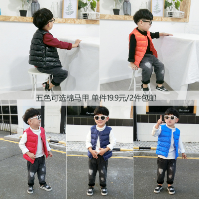 Áo trẻ em dày 2018 cho bé trai mùa đông cotton vest bé áo ấm đáy quần bé gái cổ tròn áo khoác trẻ em hàng chuẩn Áo ghi lê
