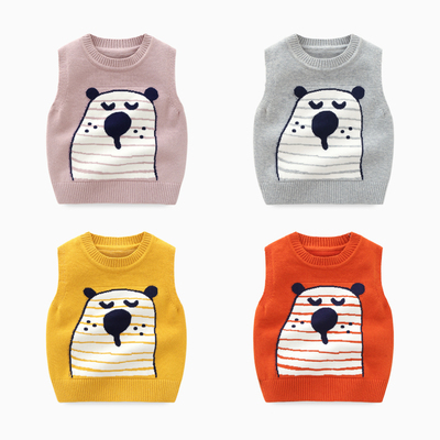 Áo vest bé gái mùa xuân và mùa thu mỏng nam bé áo len mùa thu đan áo vest bé trai bé áo vest vai bé áo gile len trẻ em