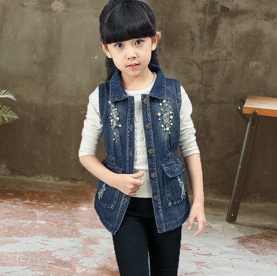 Áo vest bé gái xuân hè 2018 mới to bồng con Hàn Quốc phiên bản áo vest denim ngoại quốc cộng với áo nhung trẻ em đính cườm mỏng - Áo ghi lê áo gile hàn Áo ghi lê