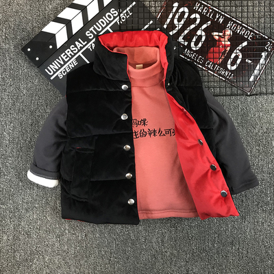 Áo vest bé trai 2018 mới mùa đông trẻ em phiên bản Hàn Quốc của áo hai dây dày cho bé vest vàng nhung vest trẻ em áo khoác ba lỗ có mũ bé trai