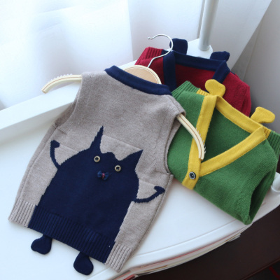 Áo vest bé trai mùa thu 2018 mới cho bé len vest Hàn Quốc áo len trẻ em áo len hoạt hình quần áo trẻ em nam Áo ghi lê