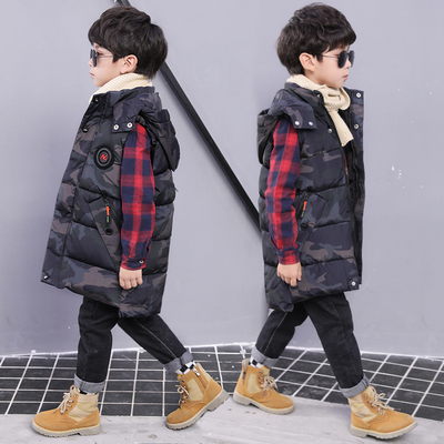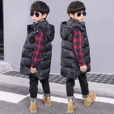 Áo vest bé trai mùa thu đông 2018 mới cho bé ngụy trang trong phần dài của phiên bản Hàn Quốc áo khoác cotton mùa đông vest bé trai áo gile màu be