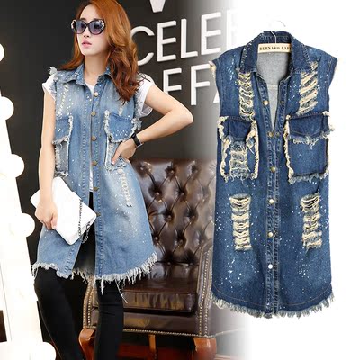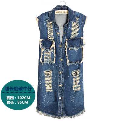 Áo vest dài denim nữ mùa xuân và mùa thu giản dị hoang dã vest phiên bản Hàn Quốc của áo vest mỏng vest vest - Áo vest bộ vest nữ đẹp Áo vest