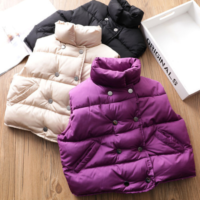 Áo vest nữ ngoại quốc mùa thu đông mới cho bé áo khoác đôi ngực trẻ em đứng cổ áo cotton phiên bản Hàn Quốc của dịch vụ bánh mì - Áo ghi lê áo gile bò cho bé Áo ghi lê
