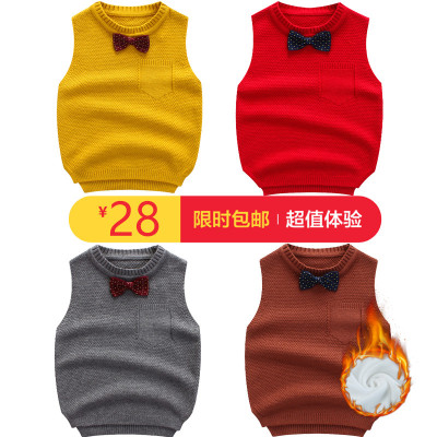 Áo vest trẻ em cộng với nhung dày cậu bé áo len cotton nam áo len bé trai cổ tròn vest ấm váy trẻ em