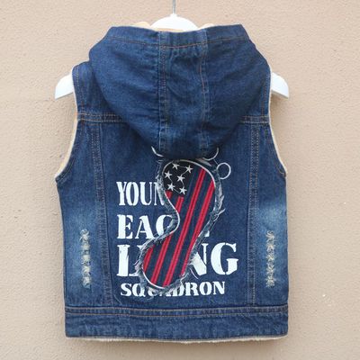 Áo vest trẻ em denim 1 cộng nhung 2 mùa thu đông mới 3 áo ấm cho bé trai và bé gái 4 áo vest bé 5 tuổi áo trẻ em