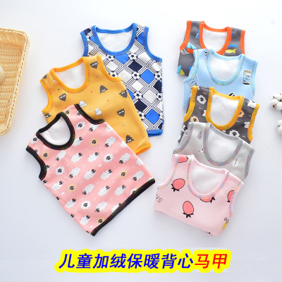 Áo vest trẻ em mới cộng với nhung xuân và mùa thu em bé thân thiết với bé trai boy gái cổ tròn vest ấm áp áo khoác ba lỗ có mũ bé gái