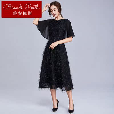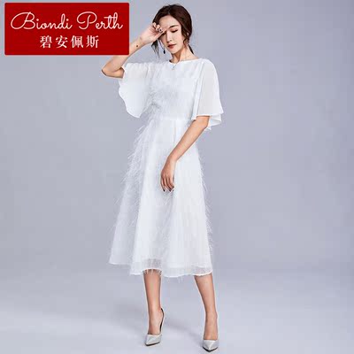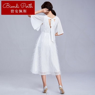 Bian Pace mới mở lại dây đeo lá sen tay áo một chiếc váy nữ mùa hè 2019 cổ tròn màu hoa rắn - A-Line Váy váy xòe hoa nhí A-Line Váy