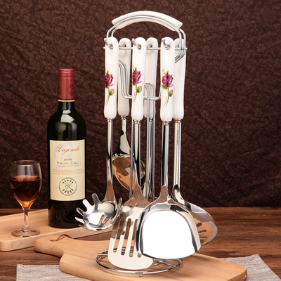 Bộ dụng cụ nhà bếp bằng thép không gỉ đặt bảy chiếc thìa đặt bếp nấu xẻng muỗng colander hộ gia đình nấu ăn đầy đủ dụng cụ nấu ăn - Phòng bếp hộp đựng gia vị thông minh Phòng bếp
