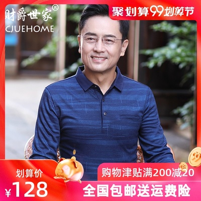 Bố mặc áo thun dài tay mùa thu nam trung niên phần mỏng áo sơ mi nam trung niên áo sơ mi mùa xuân và mẫu mùa thu - Áo phông ngắn áo thun nam tay ngắn có nón Áo phông ngắn