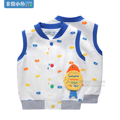 Cá rất nhỏ 25680 bé trai nhỏ mới dệt kim cotton hoạt hình khóa tối mùa xuân và mùa thu vest vest vest - Áo ghi lê áo khoác trẻ em hàng chuẩn Áo ghi lê