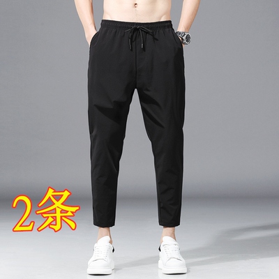 Chín quần nam rộng mùa hè siêu mỏng chân thể thao quần tám điểm quần âu băng lụa xu hướng 9 điểm quần áo nam - Quần mỏng bộ quần áo thể thao nam
