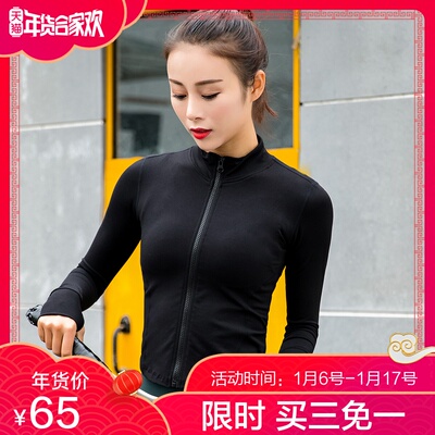 Cổ áo đứng màu rắn thể thao gợi cảm áo khoác nữ dây kéo màu trắng nhanh khô thoáng khí chạy áo khoác thể dục dài tay quần áo yoga áo khoác tập gym