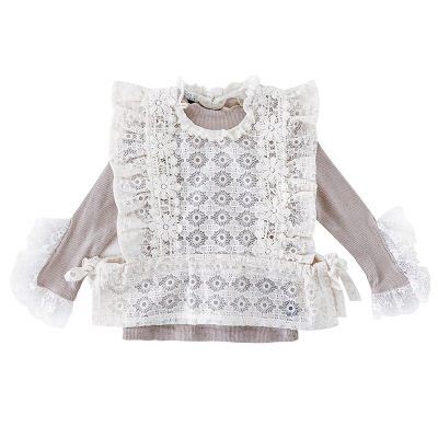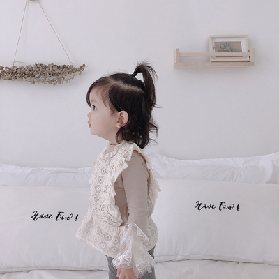 Cô gái trẻ mùa xuân và mùa thu thêu tay áo ren bé bé trăm ngày cotton bướm vest top áo gile cho bé trai