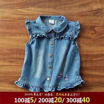 Cô gái vest cotton mùa xuân quần áo trẻ em mới trẻ em vest denim ngoài đại dương trong thủy triều lớn cậu bé cotton áo gile trẻ sơ sinh