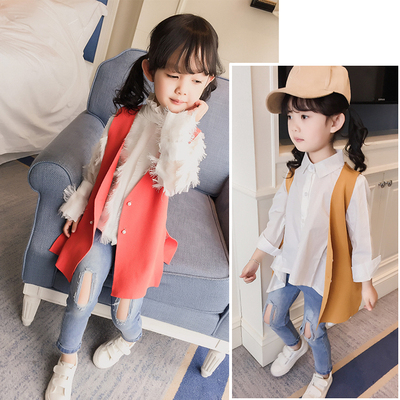 Cô gái xuân 2019 mới cho bé Hàn Quốc mùa xuân và mùa thu mẫu áo len dệt kim hoang dã áo len dài áo gile cho bé Áo ghi lê