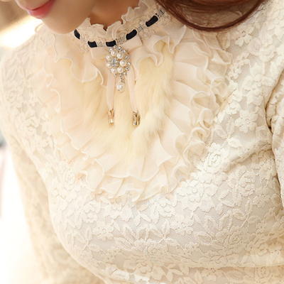 Cộng với áo voan nhung dày, áo thun nữ tay dài 2018 thu đông 2014 mới nhất của Hàn Quốc áo sơ mi họa tiết hoang dã áo sơ mi nữ trắng Áo sơ mi chiffon ren