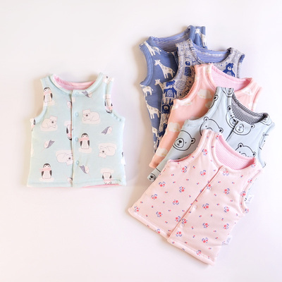 Cotton ấm tim nhỏ vest mùa thu và mùa đông đôi cotton vest nam và nữ bé ấm áp mặc vest mềm áo khoác ba lỗ có mũ bé gái