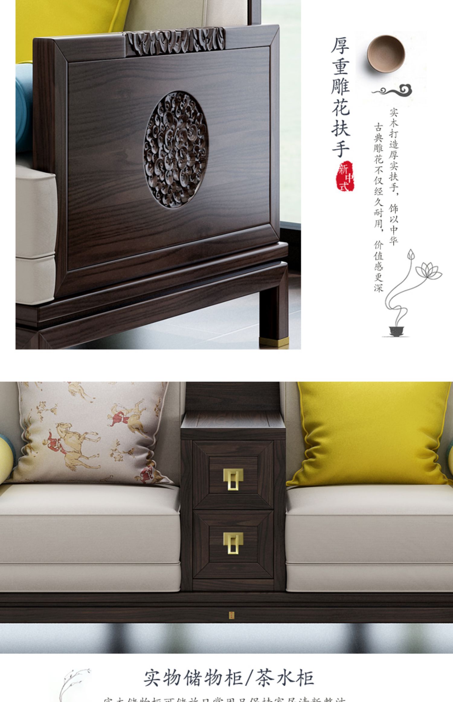 Cung điện Hoàng gia Trung Quốc sofa gỗ Zen rắn phòng khách hiện đại sofa vải nội thất mới thiết Hotel Vintage - Ghế sô pha sofa giường kéo