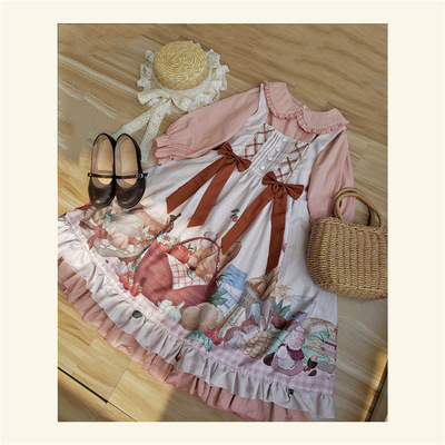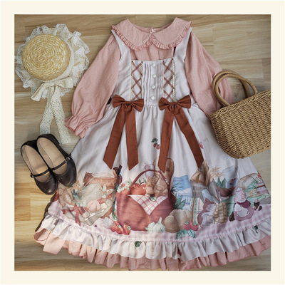 Đầu mùa thu ban đầu Lolita hàng ngày mềm mại em gái ăn mặc hamster dã ngoại xử lý jsk apron + lolita bong bóng tay áo op yếm váy váy đầm