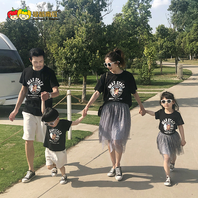 Dâu tây bí ngô cha mẹ 2019 hè mới mẹ và con gái cotton áo thun ngôi sao lưới váy hai dây phù hợp - Trang phục dành cho cha mẹ và con pijama cho mẹ và bé Trang phục dành cho cha mẹ và con