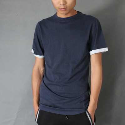 Đẹp trai không có bạn bè Chất liệu cotton nguyên chất của châu Âu và cong cong hem viền màu rắn cổ tròn thời trang nam ngắn tay áo thun mỏng áo phông nam
