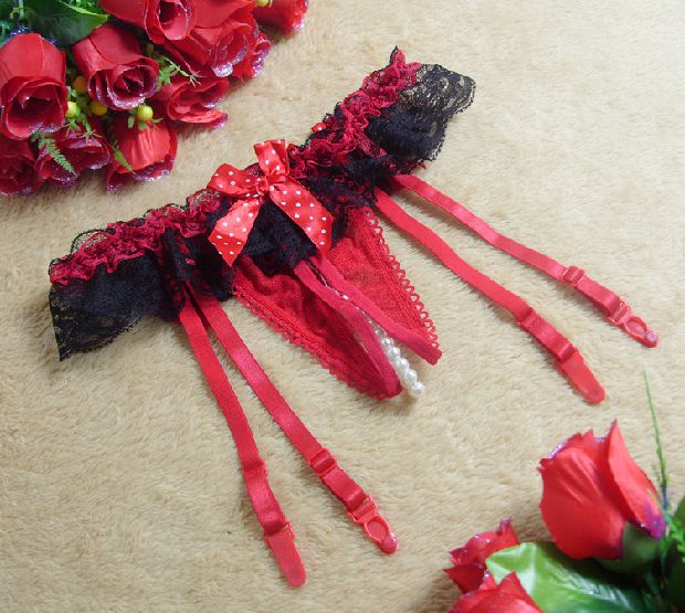 Đồ lót gợi cảm, 100 mảnh phù hợp, đồ trang trí ngọc trai, thong mở, một garter, với lưới ống dài dây nịt bít tất phối ren nơ đen