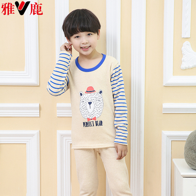Đồ lót trẻ em Yalu nhiệt cộng với nhung dày đặt đồ lót trẻ em trai và gái cổ tròn quần áo trẻ em mùa thu lớn đồ bộ cho bé