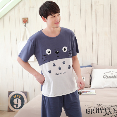 Đồ ngủ mùa hè mới đan cotton nam và đồ ngủ nữ ngắn tay cotton đôi đồ ngủ giản dị phù hợp với dịch vụ nhà bộ pijama lụa