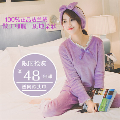 Đồ ngủ mùa thu và mùa đông của phụ nữ thành thị Hàn Quốc ren nhung nhung mùa thu tay áo dài mỏng dễ thương phù hợp với vẻ đẹp đồ pijama Giống cái