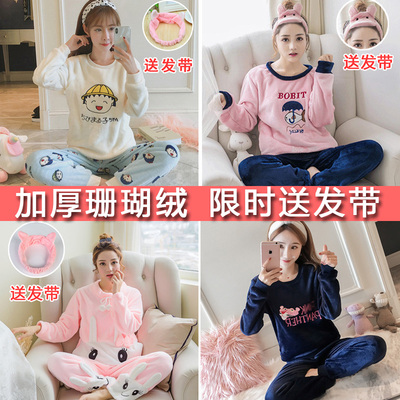 Đồ ngủ nhung san hô của phụ nữ mùa đông dày flannel mùa thu phiên bản Hàn Quốc của phim hoạt hình dài tay kích thước lớn phục vụ nhà vòng cổ phù hợp bộ nỉ nữ mùa đông