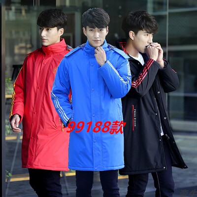 Đội tuyển quốc gia Trung Quốc bóng đá đào tạo mùa đông quần áo cotton thể thao dày chàng trai và cô gái cộng với áo dài đầu gối áo phao nữ dáng ngắn