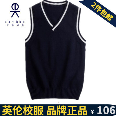 Đồng phục học sinh tiểu học và trung học Eaton Gide vest cổ chữ V cho bé trai và bé gái màu xanh hải quân đan áo len 09B101 - Áo ghi lê áo thun trẻ em