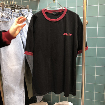 Dongdaemun Quần áo nam Hàn Quốc phát sóng trực tiếp kiểu cổ áo màu chữ lỏng lẻo Áo thun tay ngắn 190315 - Áo phông ngắn áo thun nam gucci Áo phông ngắn