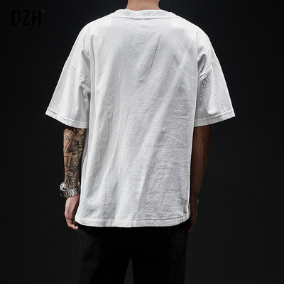 DZH nam mùa hè đầm năm điểm tay áo thêu rắn màu áo thun nam lỏng lẻo cotton mùa hè tay ngắn nam xu hướng thương hiệu - Áo phông ngắn áo thun nam cotton Áo phông ngắn