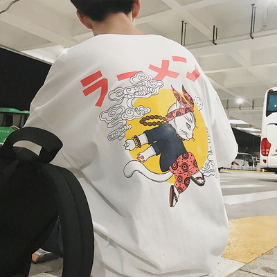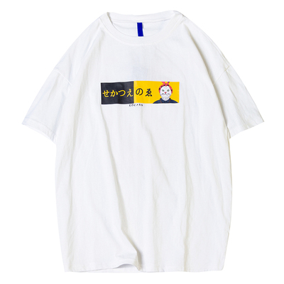 Fang Shao nam mùa hè anime cá tính in ngắn tay thương hiệu thủy triều oversize bé trai áo phông hip-hop - Áo phông ngắn áo thun nam tay ngắn có cổ
