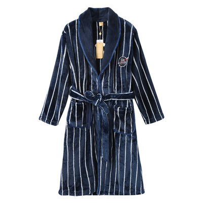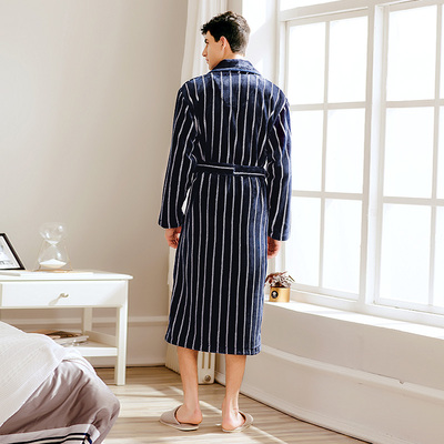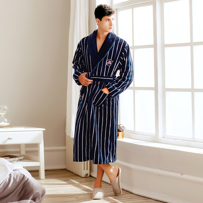 Fenton mới cho nam áo ngủ mùa đông san hô lông cừu đồ ngủ dài tay giản dị sọc dài áo choàng ấm flannel áo choàng ngủ nam