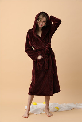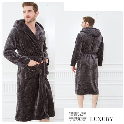 Flannel nữ mùa đông trùm đầu áo ngủ ấm dày dày dài cộng với kích thước đồ ngủ san hô nhung nam mùa thu và áo choàng đôi shop do ngu Night Robe