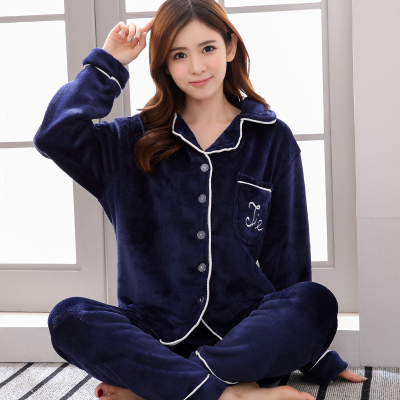 Flannel pyjama phụ nữ mùa thu và mùa đông dày lông cừu san hô ấm phù hợp với dài tay Hàn Quốc ngọt ngào tinh khiết màu sắc dịch vụ nhà phụ nữ đồ bộ nam Bộ Pajama