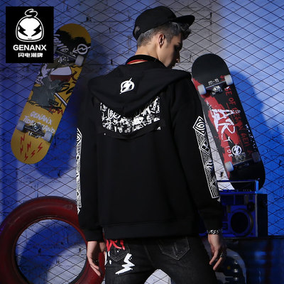 GENANX sét triều nhãn hiệu áo khoác nam mùa xuân và thời trang mùa thu mới xu hướng áo khoác đen nam đẹp trai - Áo khoác đôi quần áo nam Áo khoác đôi