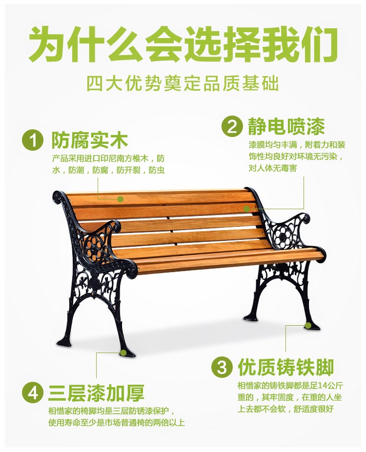 Ghế gỗ công viên dày Gỗ ngoài trời Gỗ chống ăn mòn Ghế gỗ Công viên đôi Ghế gỗ Ghế sắt Ghế sắt - Bàn ghế ngoài trời / sân bộ bàn ghế ngoài trời giá rẻ Bàn ghế ngoài trời / sân