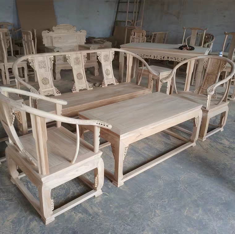 Ghế sofa gỗ cũ Elm phòng khách mới Trung Quốc cung điện ghế Taishi đơn giản hiện đại gỗ rắn trắng bill phôi trắng - Ghế sô pha sofa văng Ghế sô pha