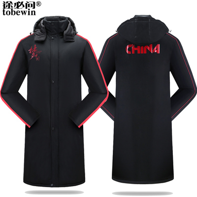 Giấc mơ bóng đá Trung Quốc dài mùa đông đào tạo áo thể thao áo khoác cotton dày nam và nữ đào tạo ngoài trời dài clothes quần áo cotton tùy chỉnh - Quần áo độn bông thể thao áo phao mũ lông Quần áo độn bông thể thao