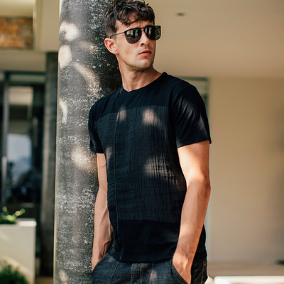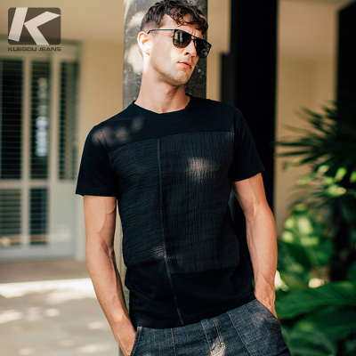 [Giải phóng mặt bằng] Áo thun nam ngắn tay thời trang Khâu đen cổ tròn Đầm mùa hè thoải mái Áo thun thoáng khí 745 áo thun nam có cổ Áo phông ngắn