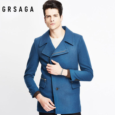 GR Men Winter Men Casual Business Blue Blue Joker Double Buckle Jacket áo cardigan nam