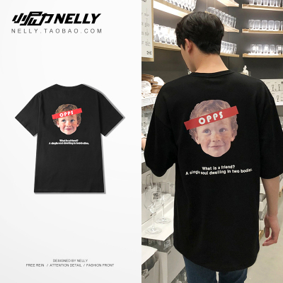 Guo Chao ban đầu thương hiệu thủy triều ngắn tay áo thun nam và nữ xu hướng hip-hop hip-hop đường phố nửa tay áo tee Nhật Bản áo thun nam tay ngắn đen Áo phông ngắn