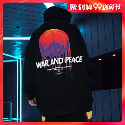 Guochao đường phố oversize áo len nam trùm đầu hiphop hip hop nam xu hướng mũ trùm đầu người yêu - Áo len hoodie trơn