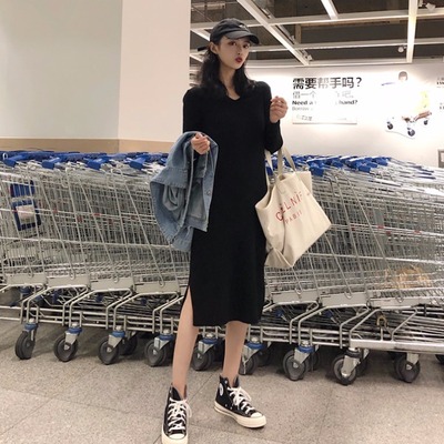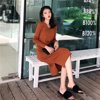 Han 2018 mới buông xõa buông xõa thu đông thu nhỏ học sinh giảm béo đáy váy đan nữ dài tay mẫu váy đẹp 2021