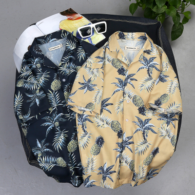 Hàn Quốc ulzzang Nhật Bản retro lá dứa những người yêu thích áo sơ mi phong cách Harajuku thời trang nam và nữ áo sơ mi ngắn tay ao khoac nam