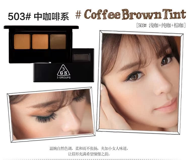 Hàng loạt ~ 3GS chính hãng 3 màu lông mày bột lông mày bút chì không thấm nước hiệu ứng kép ba chiều nhuộm lông mày kem trang điểm là không nở bút kẻ lông mày Bút chì lông mày / Bột / Stick
